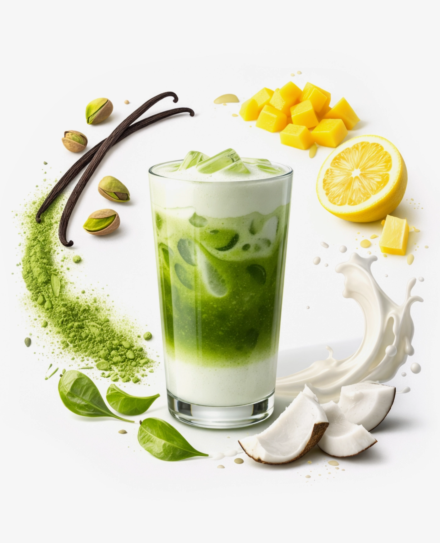 Skład: woda, cukier, ekstrakt z zielonej herbaty, naturalny aromat zielonej herbaty matcha, naturalny aromat, barwniki: E150a, E133, kwas: E330, sól, substancje konserwujące: E202, E211