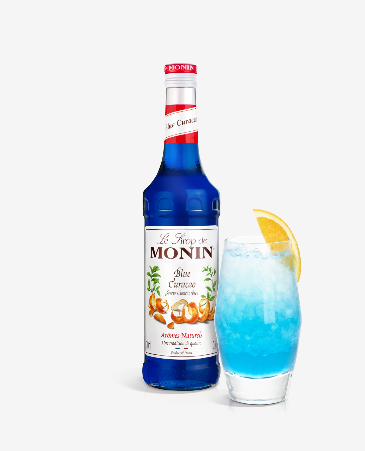 Syrop Monin Blue Curacao jest likierem oryginalnie wytwarzanym ze skórki zielonych pomarańczy. Posiada pomarańczowy aromat z różnymi stopniami goryczki. Najbardziej popularne niebieskie Curacao posiada piękny ciemnoniebieski kolor. Dzięki swojej barwie doskonale sprawdza się do przygotowywania różnego rodzajów koktajli oraz drinków.